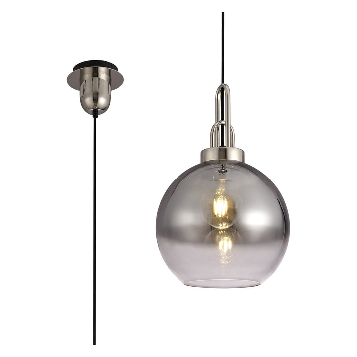 Acme 1 Light Pendant With 30cm Globe Glass Polished Nickel/Matt Black/Smoked/Clear