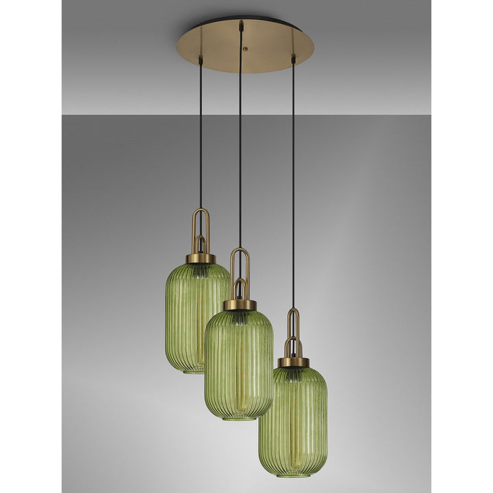 Nelson Lighting NLK15529 Acme 3 Light Round Pendant Brass Gold Matt Black
