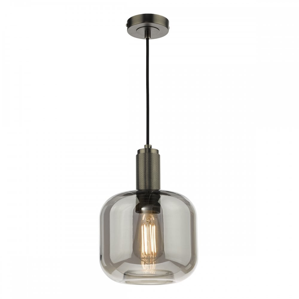 Dar NIK0167-E05 Nikolas Pendant Polished Nickel Smoked Glass