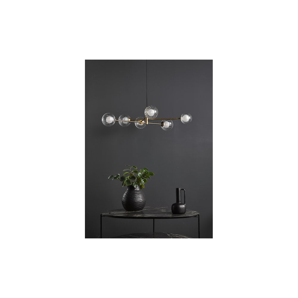 The Dar VIG0645-20 Vignette 6 Light Pendant is a fusion of classic and contemporary design elements, featuring an aged brass finish with stunning clear and opal ribbed glass.
