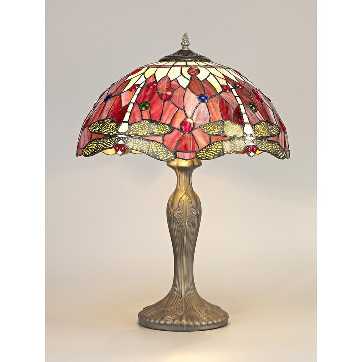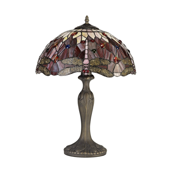 Heidi 2 Light Curved Table Lamp With 40cm Tiffany Shade Purple/Pink/Crystal/Aged Antique Brass