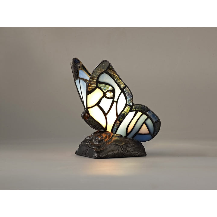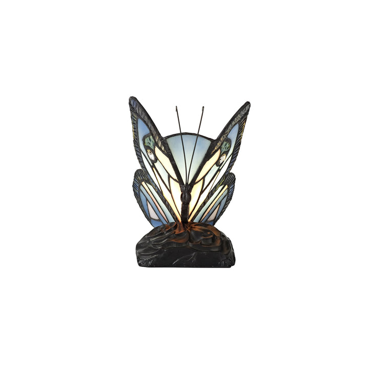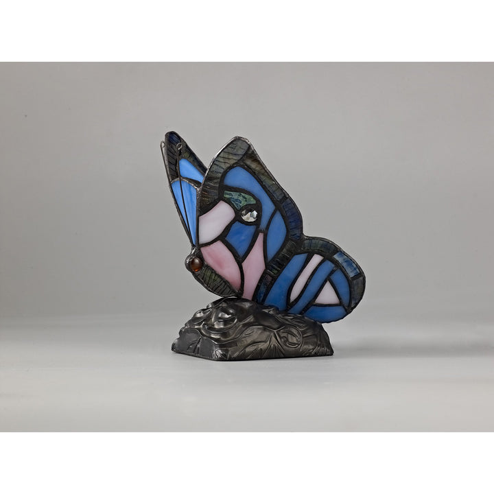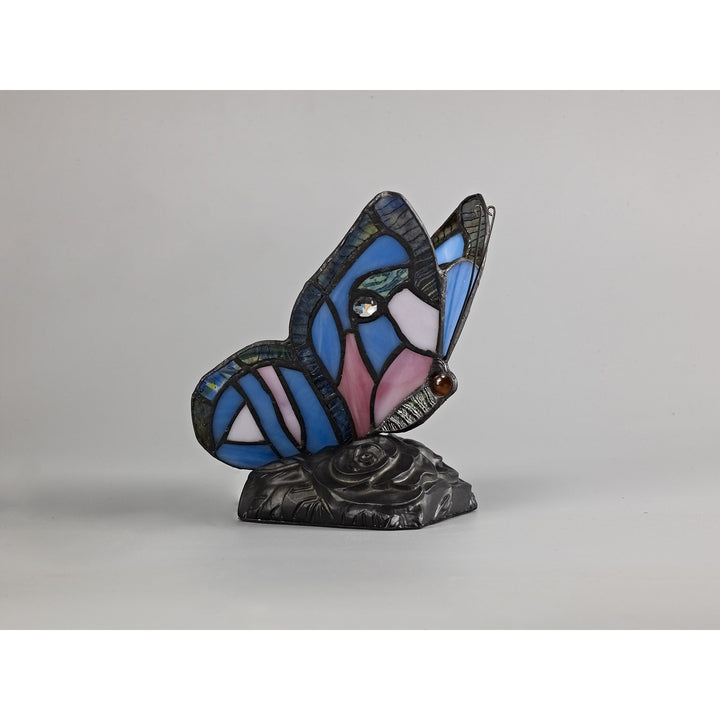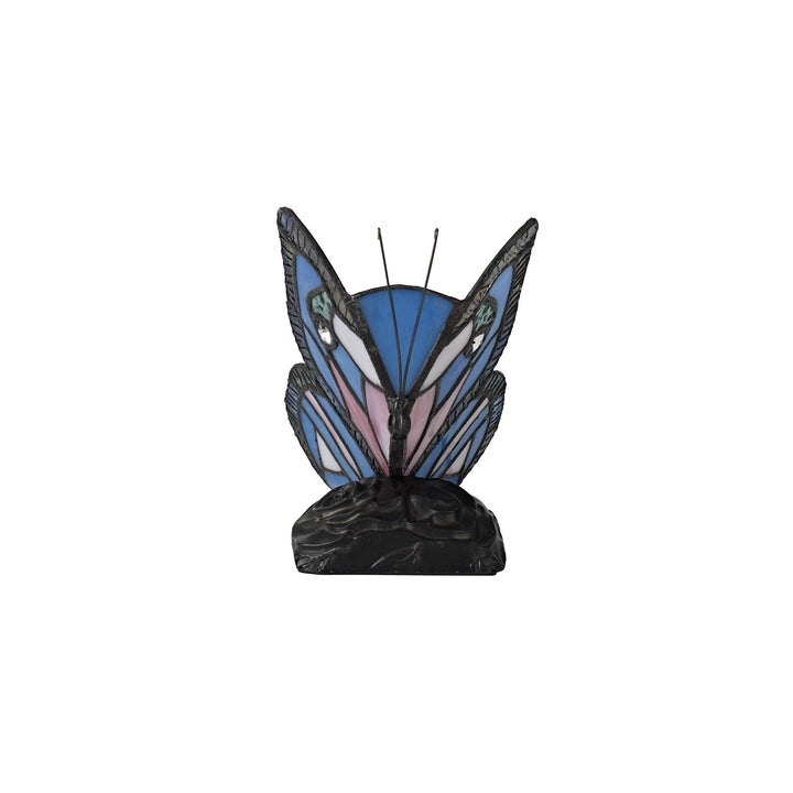 Monty Tiffany Butterfly Table Lamp 1 Light Black Base With Blue/Pink Glass With Clear Crystal
