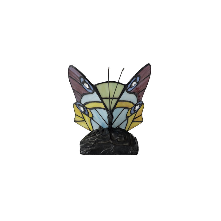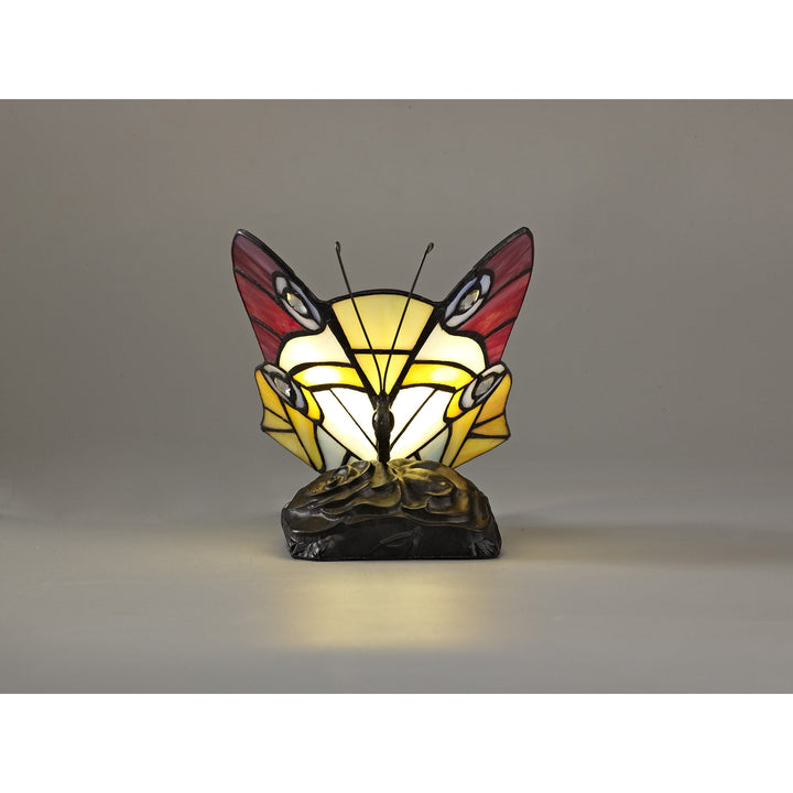 Nelson Lighting NL73029 Monty Tiffany Butterfly Table Lamp 1 Light Black Base Red/Yellow/Blue