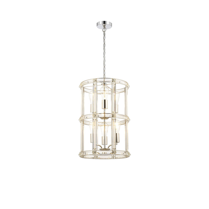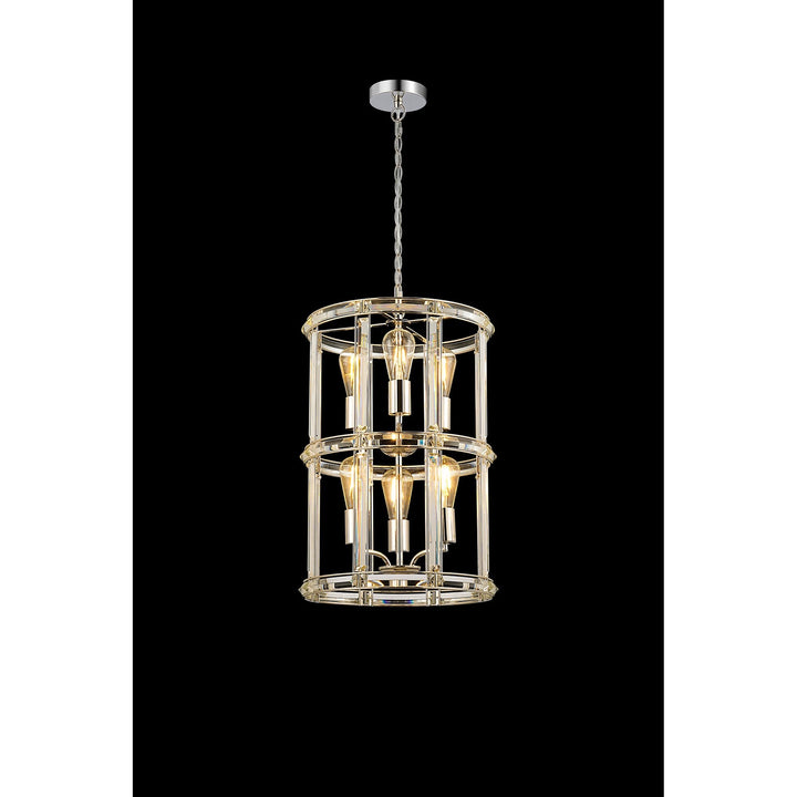 NL99919 Char 6 Light Round Pendant Polished Nickel Clear