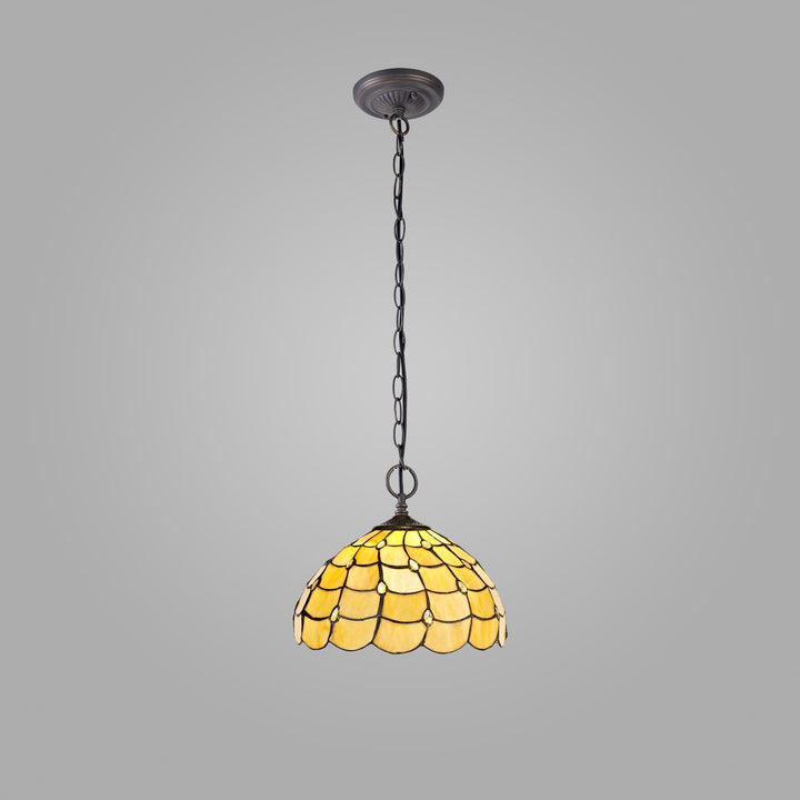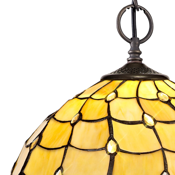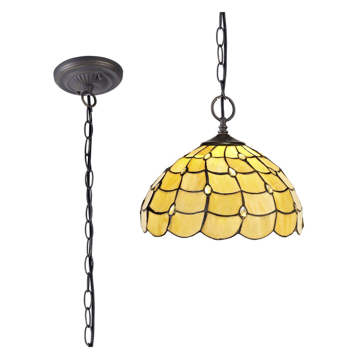 Chrisy 2 Light Down Lighter Pendant With 30cm Tiffany Shade Beige/Clear Crystal/Aged Antique Brass