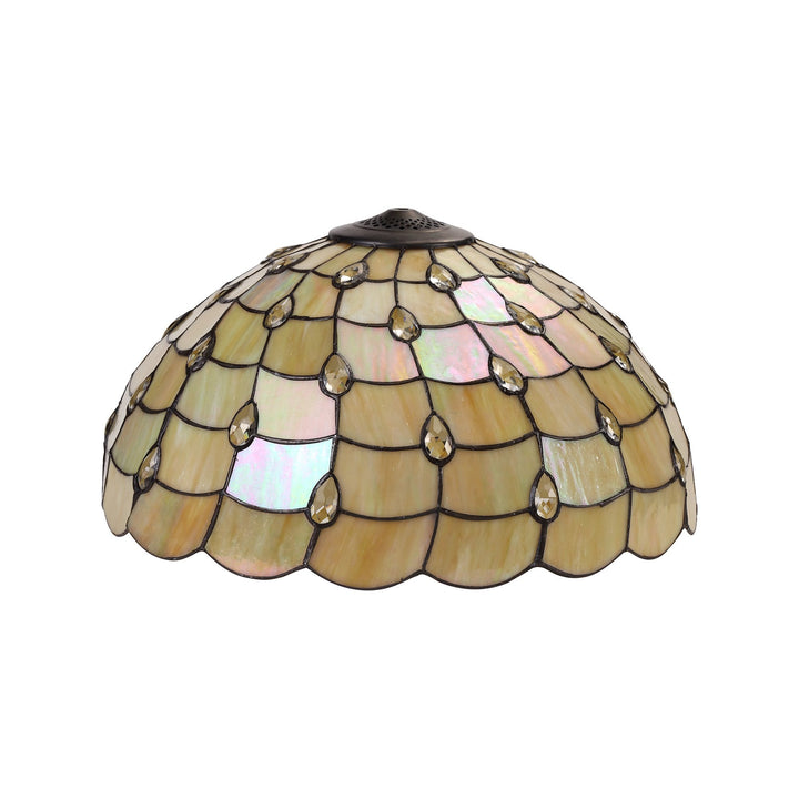 Chrisy 2 Light Down Lighter Pendant With 50cm Tiffany Shade Beige/Clear Crystal/Aged Antique Brass