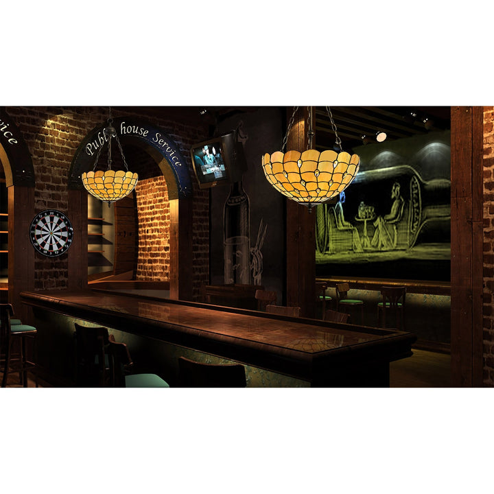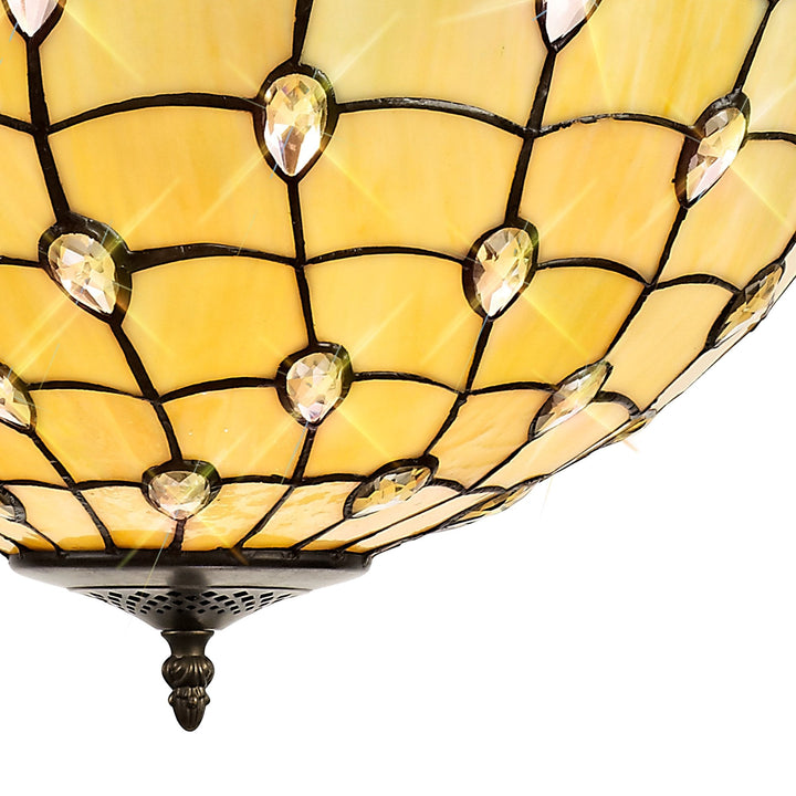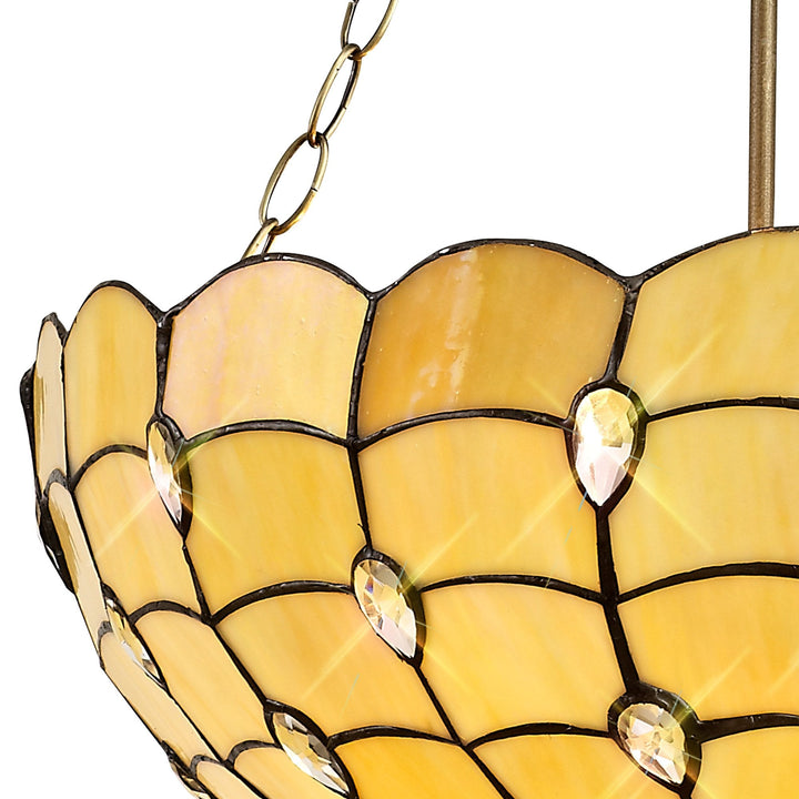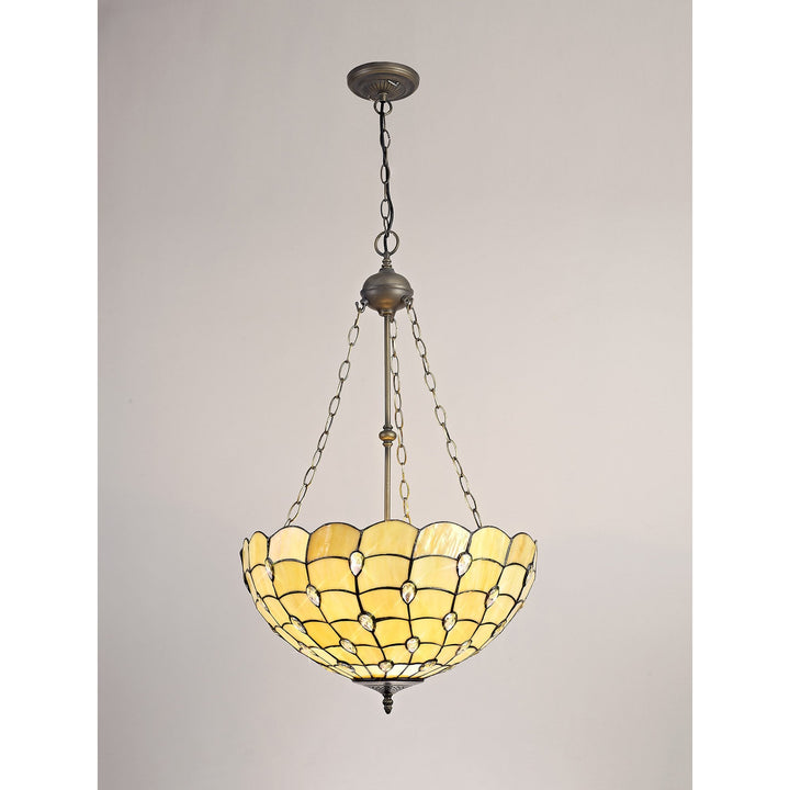 Nelson Lighting NLK00599 Chrisy 3 Light Up Lighter Pendant With 50cm Tiffany Shade Beige/Aged Antique Brass