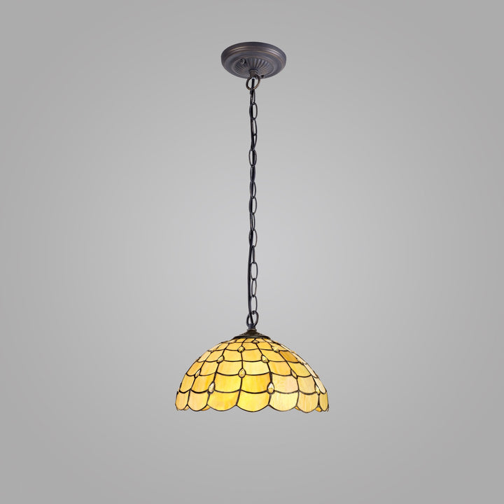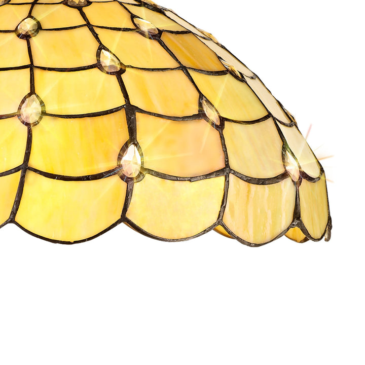 Chrisy 1 Light Down Lighter Pendant With 40cm Tiffany Shade Beige/Clear Crystal/Aged Antique Brass