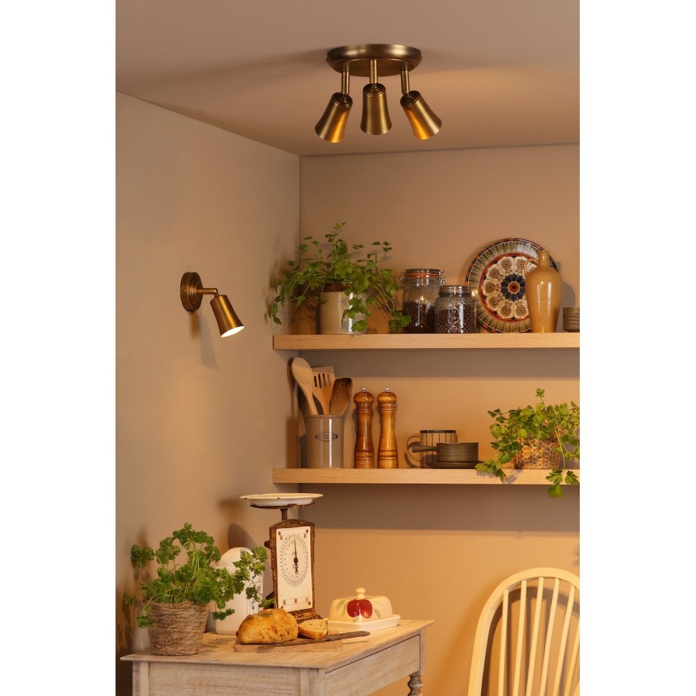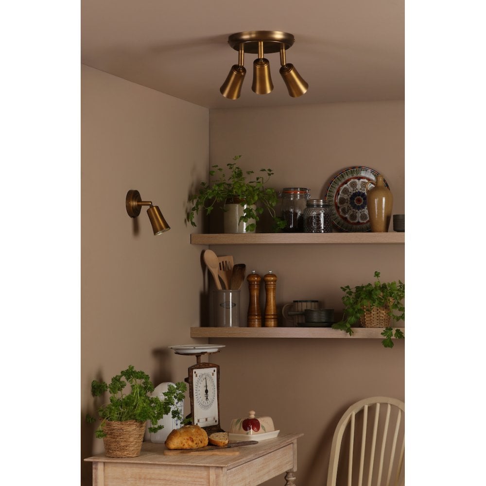 The Jedrek single spotlight combines heritage styling with practical versatility in a compact design. Crafted from steel with a rich aged brass finish, it brings authentic character while offering discreet, focused illumination. The adjustable head allows precise light direction, making it perfect for highlighting artwork, pictures, or providing task lighting. Designed for wall or ceiling mounting, it works beautifully in kitchens, studies, bedrooms, corridors, or cottage-style interiors with exposed beams. A discreet rocker switch adds convenience and can be disabled on installation if preferred. Compact yet full of charm, the Jedrek spotlight blends traditional style with modern practicality for a timeless lighting solution.
