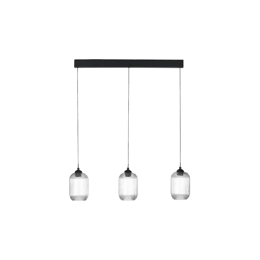The Eileen 3 Light Bar Pendant from Dar Lighting is designed to enhance your space with modern elegance. This stylish pendant features a sleek matt black finish that pairs beautifully with its three ribbed glass shades, adding texture and visual interest to any room. Ideal for hanging over kitchen islands or dining tables, it serves as a striking focal point while providing ample illumination.Equipped with efficient LED technology, this pendant ensures long-lasting performance while helping to reduce energy costs. The ribbed glass shades diffuse light effectively, creating a warm and inviting atmosphere perfect for both casual meals and entertaining guests. With an adjustable height of 31 to 180 cm at installation, the Eileen can be tailored to fit various ceiling heights.Whether updating your home or adding the perfect finishing touch, this pendant light combines style and practicality seamlessly. It requires three bulbs with a maximum wattage of 60W each and an ES GLS fitting, making it a versatile choice for any contemporary setting.