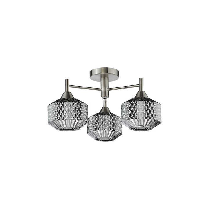Dar FAB5338 Fabrienne 3 Light Semi-Flush Satin Nickel and Smoked Glass