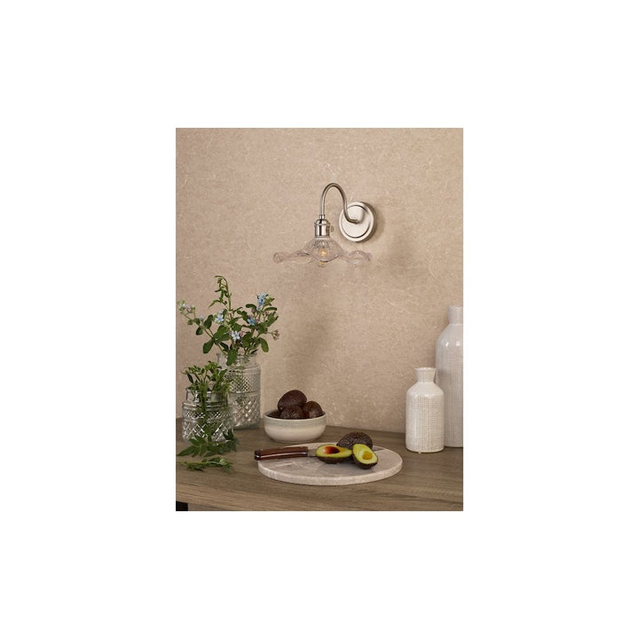 Infuse your home with vintage charm through the Hadano antique chrome wall light from dar lighting. This delightful fixture harmoniously blends classic elegance with contemporary functionality, showcasing a wavy glass shade that emits a warm, inviting glow. The subtle lustre of the antique chrome finish enhances its versatility, making it suitable for both traditional and modern settings. For ease of use, it features a removable pull cord switch, allowing you to customise its operation according to your preference. As part of the extensive Hadano collection, this wall light provides adaptable lighting solutions for any area, whether it’s a snug bedroom or a characterful hallway. Enjoy the rustic appeal of country living while maintaining style and quality.This wall light requires one SES GB bulb with a maximum wattage of 40W (bulb not included). The recommended bulb for optimal performance is the BUL-E14-LED-15.
