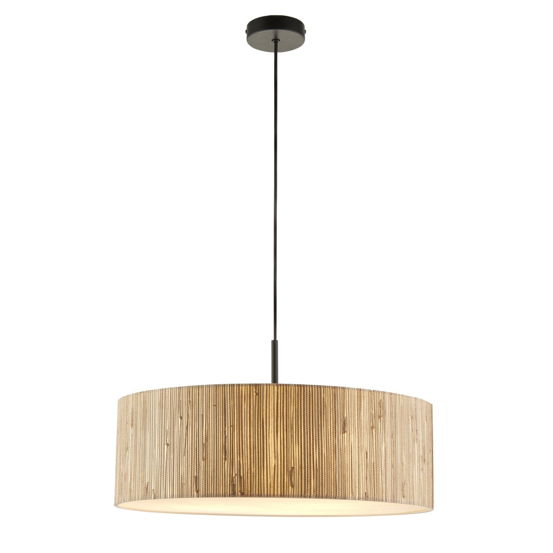 Bringing organic texture and warm simplicity to any space, this single pendant features a cylindrical shade woven from natural seagrass. Its earthy tones and linear weave add depth and a touch of rustic elegance, while the soft fabric diffuser below casts a gentle, even glow. Ideal for dining areas, bedrooms, or relaxed living spaces, it blends effortlessly into both coastal and contemporary interiors. Suspended from black flex with matt black ceiling cover.