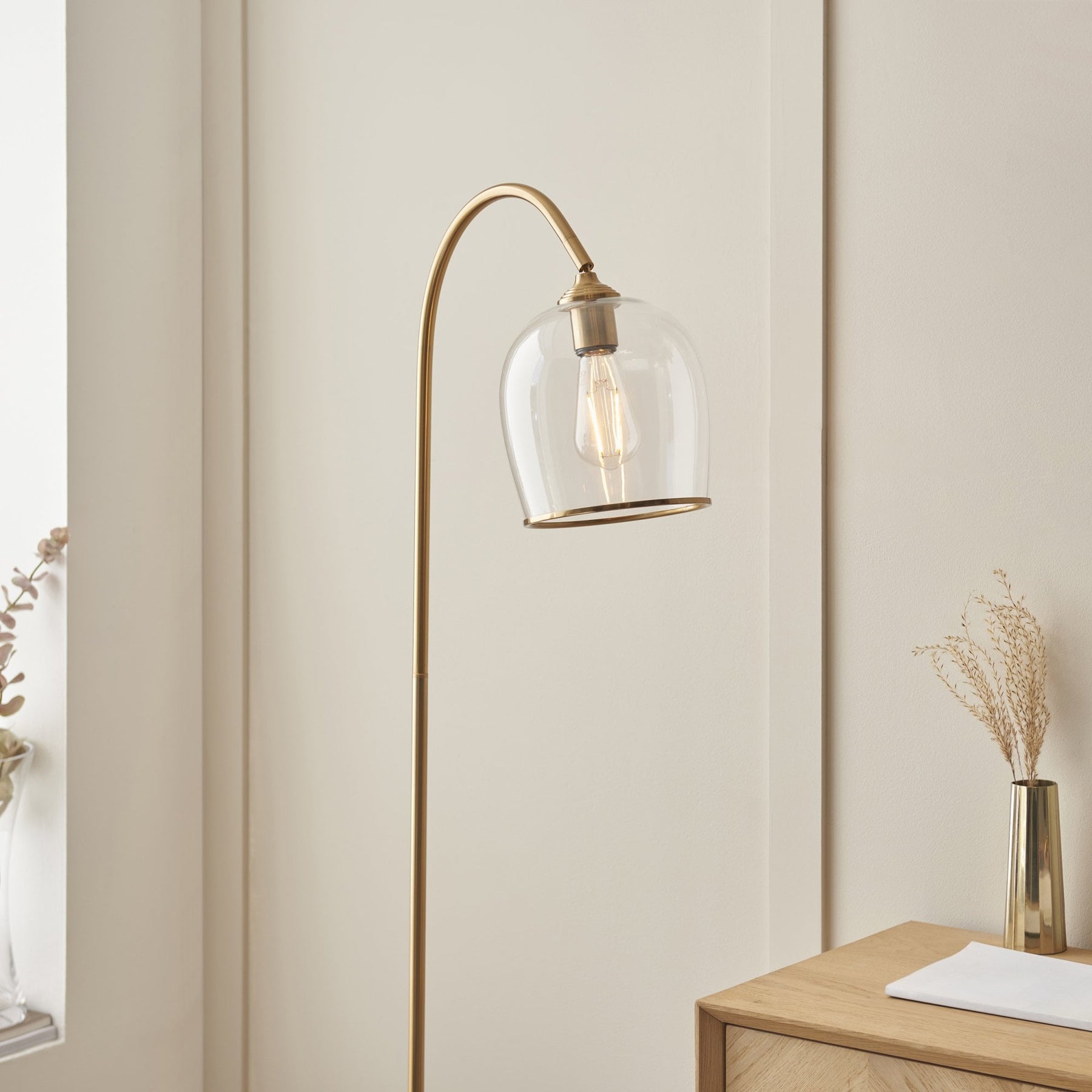 Endon 120620 Ashcroft Floor Lamp Brushed Aged Brass Plate & Clear Glass