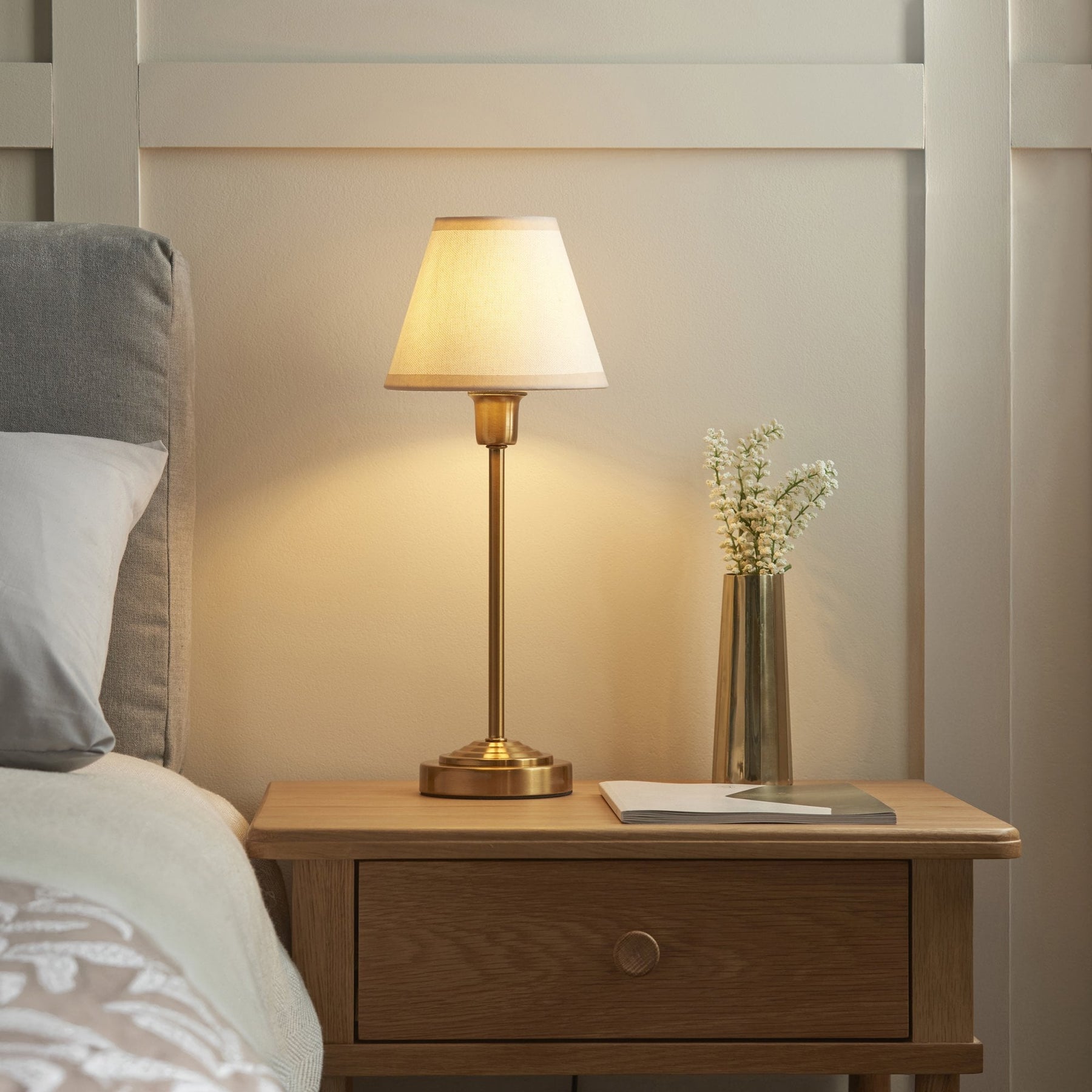 120937 Rise & Ivy 16cm Table Lamp Vintage Brass Finish & Vintage White Fabric