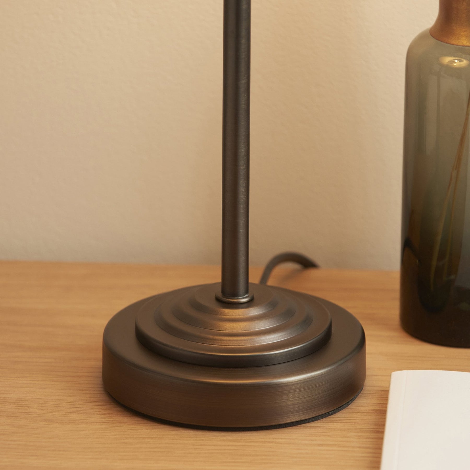 This elegant table lamp is the perfect foundation for showcasing your personal style. Featuring a timeless stepped design in an antique bronze finish, it offers a refined silhouette that complements both classic and contemporary interiors. Paired with our Ivy 16cm shade.