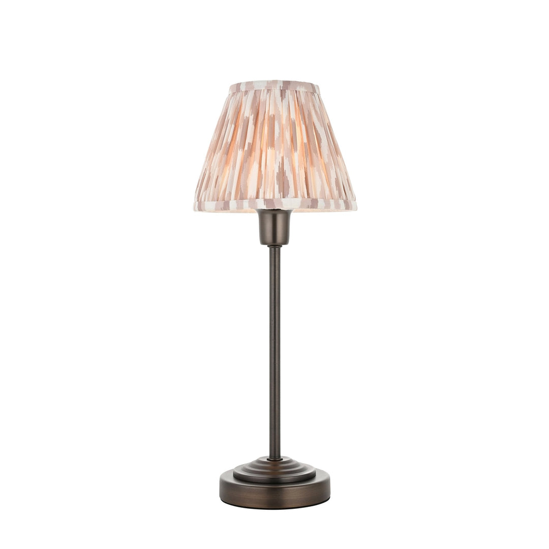 Endon 121006 Rise & Ikat 16cm Table Lamp Antique Bronze Plate & Neutral Print Fabric