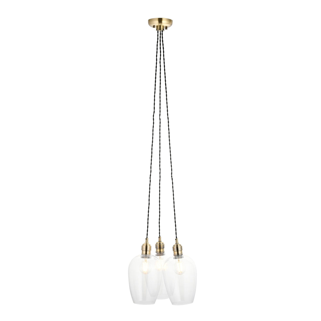 Endon 120648 3 Light Pendant Antique Brass Plate & Clear Glass