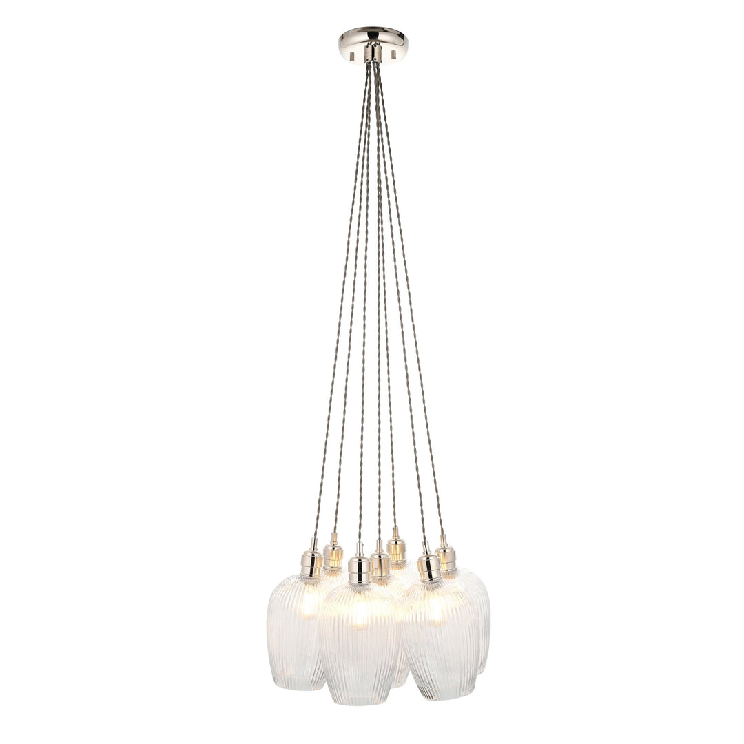 Endon 120650 7 Light Pendant Bright Nickel Plate & Clear Ribbed Glass
