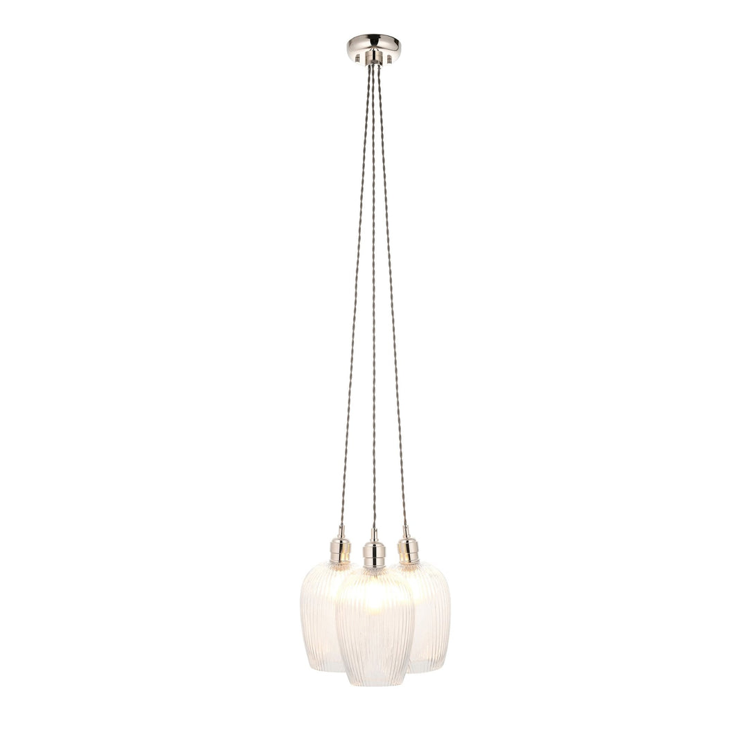 Endon 120652 3 Light Pendant Bright Nickel Plate & Clear Ribbed Glass