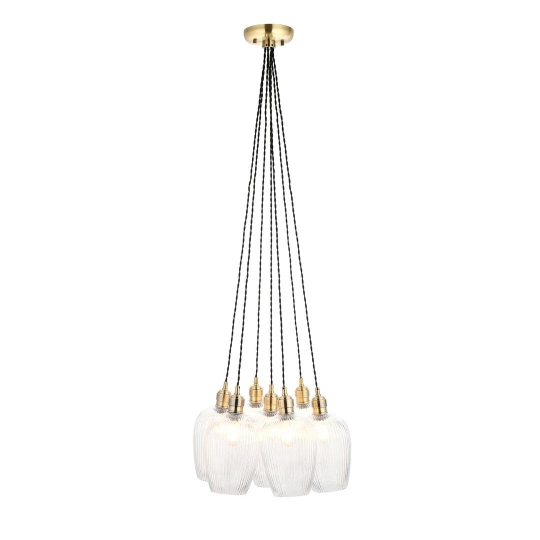 Endon 120654 7 Light Pendant Antique Brass Plate & Clear Ribbed Glass