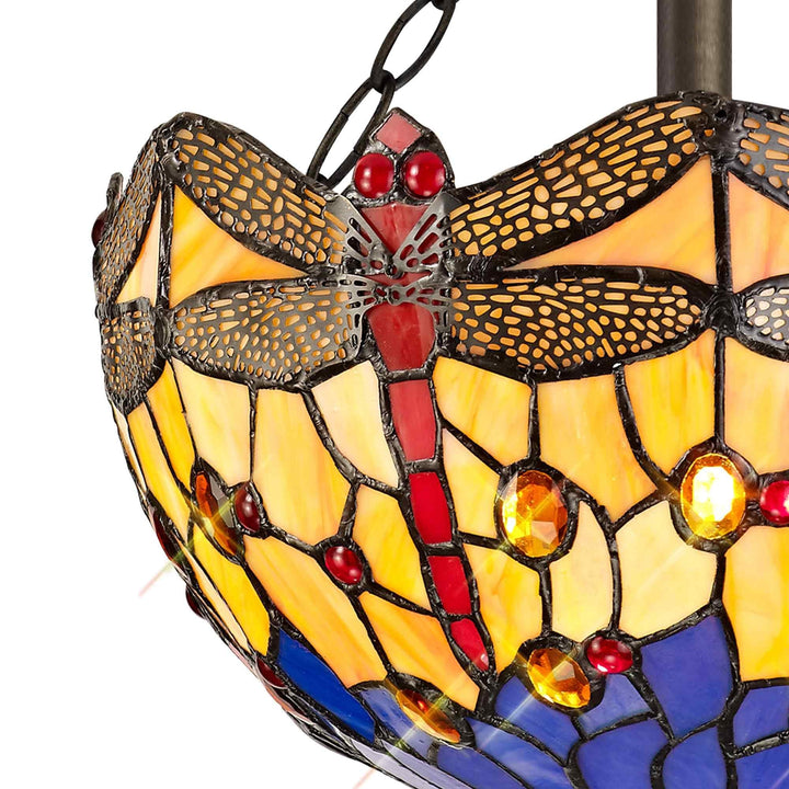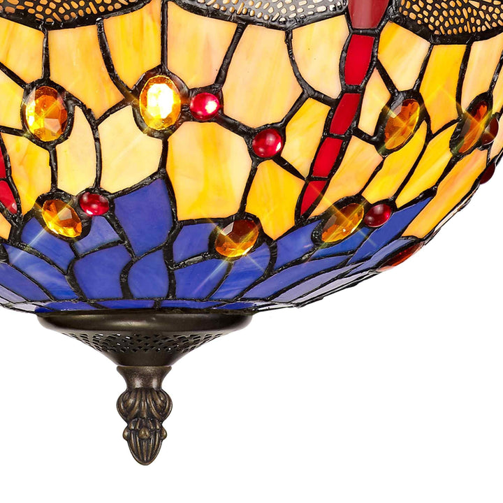 Heidi's stunning Tiffany glass design features the classic dragonfly form, effortlessly fashioned into the overall mosaic collection of Tiffany glass pieces. Reinterpreting an old-fashioned concept, additional crystal pieces have been inserted into the glass shades providing a touch of modern sparkle and elegance. Available in two colour finishes this beautiful pattern is featured across a comprehensive variety of lighting solutions.