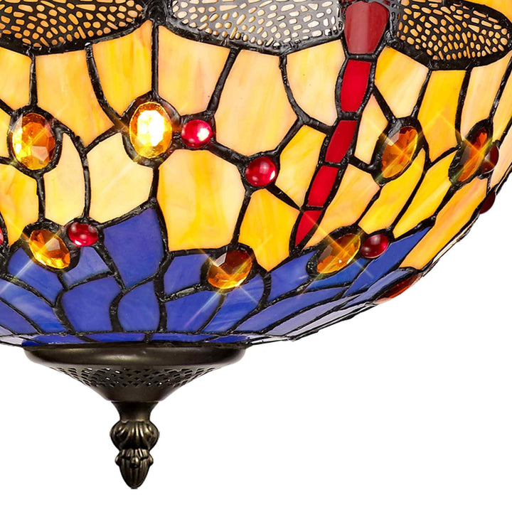 Heidi's stunning Tiffany glass design features the classic dragonfly form, effortlessly fashioned into the overall mosaic collection of Tiffany glass pieces. Reinterpreting an old-fashioned concept, additional crystal pieces have been inserted into the glass shades providing a touch of modern sparkle and elegance. Available in two colour finishes this beautiful pattern is featured across a comprehensive variety of lighting solutions.