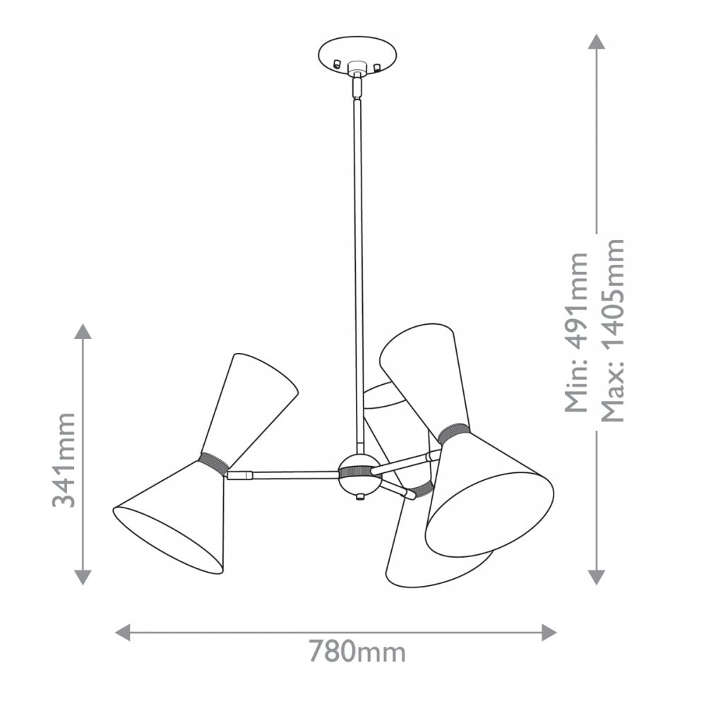 Dimensions: H: 341mm D: 780mm Min/Max Drop: 491mm - 1405mm