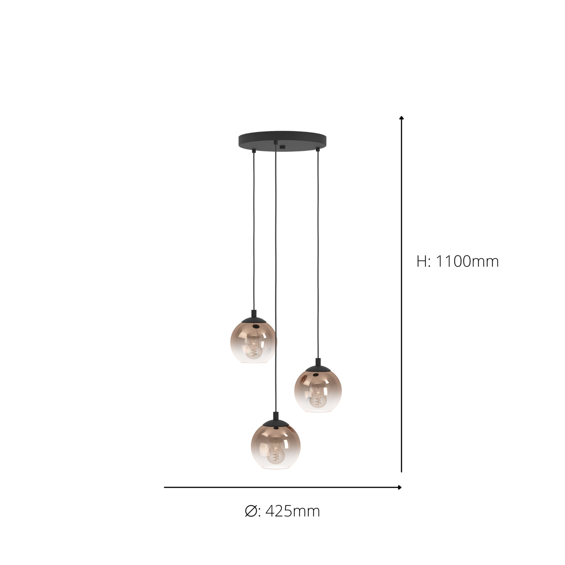 Eglo 901925 Ariscani 1 Copper Ombre Effect Glass 3 Light Pendant