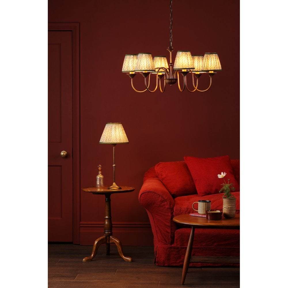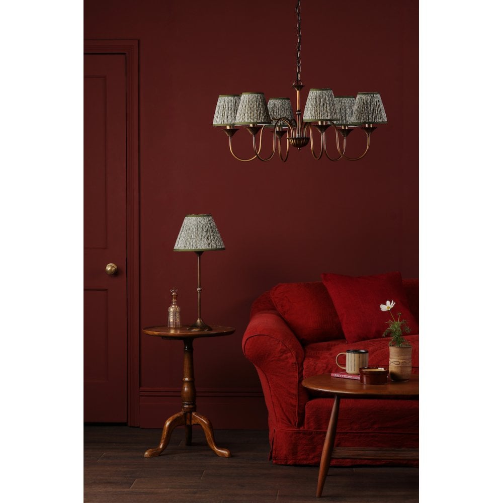 The Lydian Table Lamp brings traditional craftsmanship and farmhouse warmth in a compact, versatile design. Finished in rich antique bronze with decorative starburst detailing and heritage-inspired accents, it comes complete with a green cotton shade that softens the light while adding a fresh touch of colour. Perfect for living rooms, bedrooms, dining spaces, or hallways, it creates a soft, welcoming glow and a touch of timeless style. Finished with a luxury black braided cable, the Lydian combines warm metallic tones with classic proportions, making it an elegant addition to both traditional and transitional interiors.