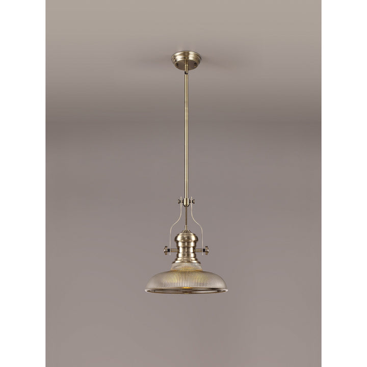 Nelson Lighting NLK01159 Louis 1 Light Telescopic Pendant With 30cm Round Glass Shade Antique Brass/Smoked