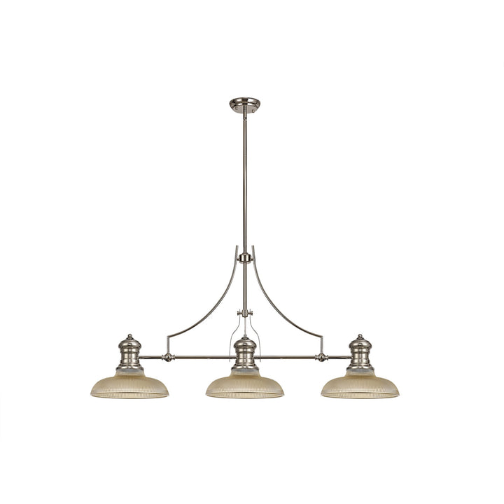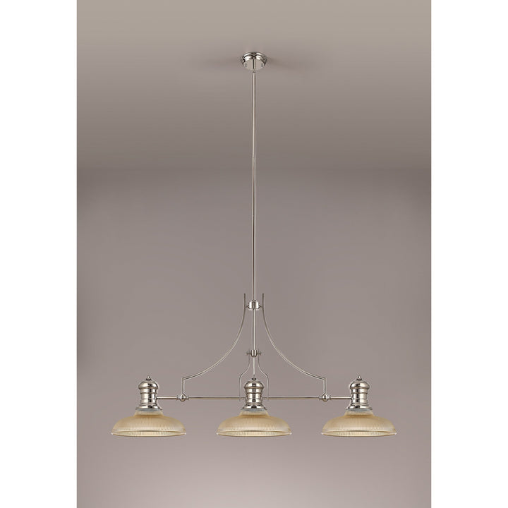 Nelson Lighting NLK03649 Louis 3 Light Telescopic Pendant With 30cm Round Glass Shade Polished Nickel/Amber