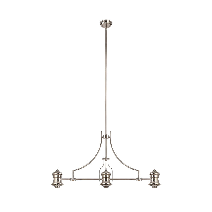 Louis's unique shapes project a modern ambience which is partnered with traditional colour finishes to create a more contemporary collection. Available as a one light pendant or three light bar pendant with a choice of optional shades in different shapes to shade the light emitted from the E27 lampholders. The distinctive inimitability of this design produces a prominent feature in its given space.