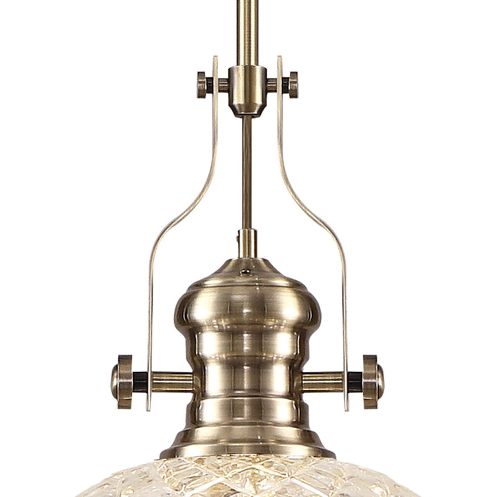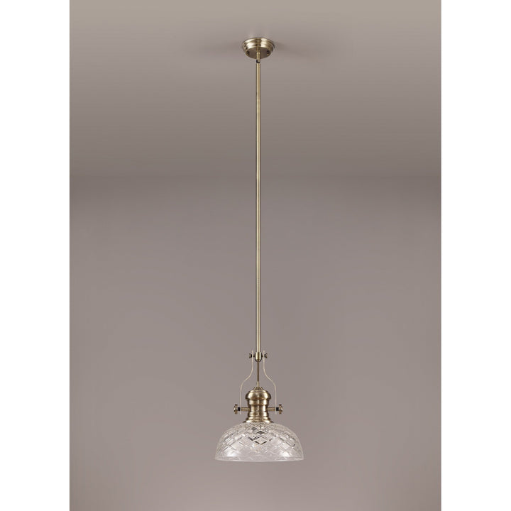 Louis Pendant With 30cm Flat Round Patterned Shade Antique Brass/Clear Glass