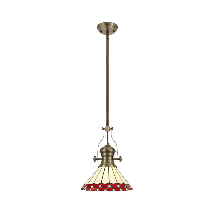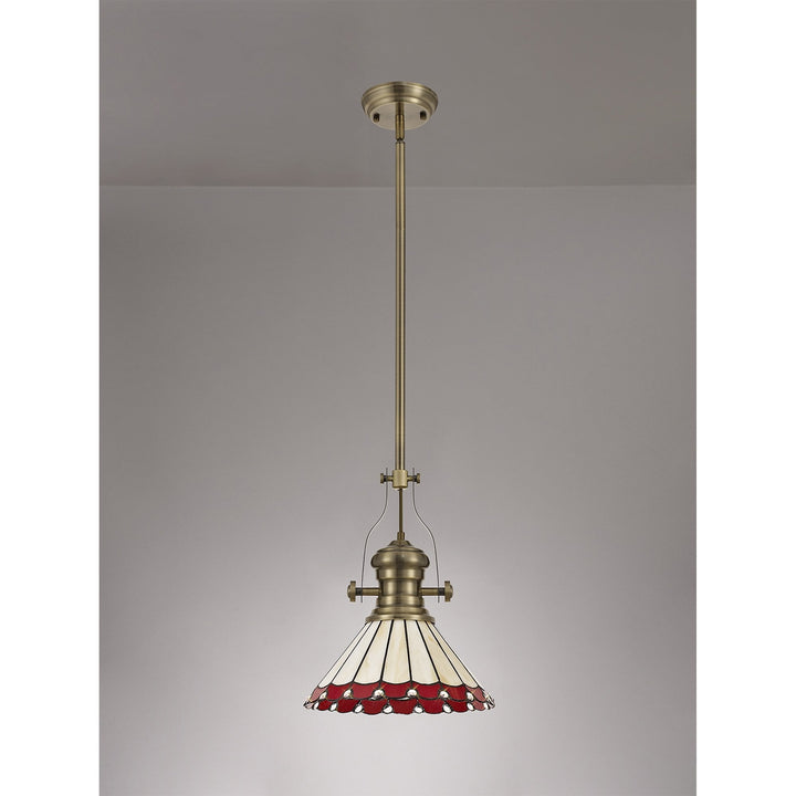Louis/Umbrian 1 Light Telescopic Pendant With 30cm Tiffany Shade Antique Brass/Red/Chrome/Crystal