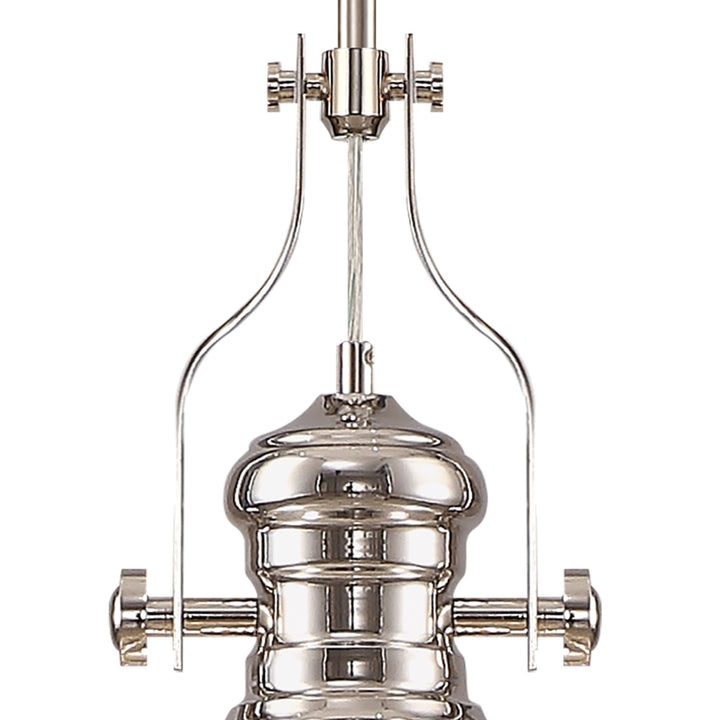 The Nelson Lighting NL7262/PN9 Louis 1 Light Pendant in Polished Nickel and Clear Glass merges modern design with classic styling, perfect for adding a touch of sophistication to any interior setting.