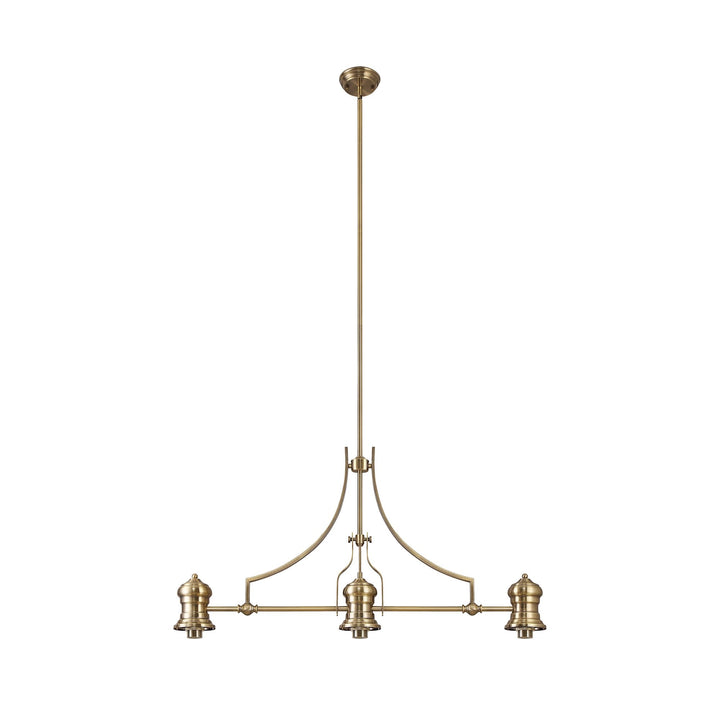 Louis's unique shapes project a modern ambience which is partnered with traditional colour finishes to create a more contemporary collection. Available as a one light pendant or three light bar pendant with a choice of optional shades in different shapes to shade the light emitted from the E27 lampholders. The distinctive inimitability of this design produces a prominent feature in its given space.