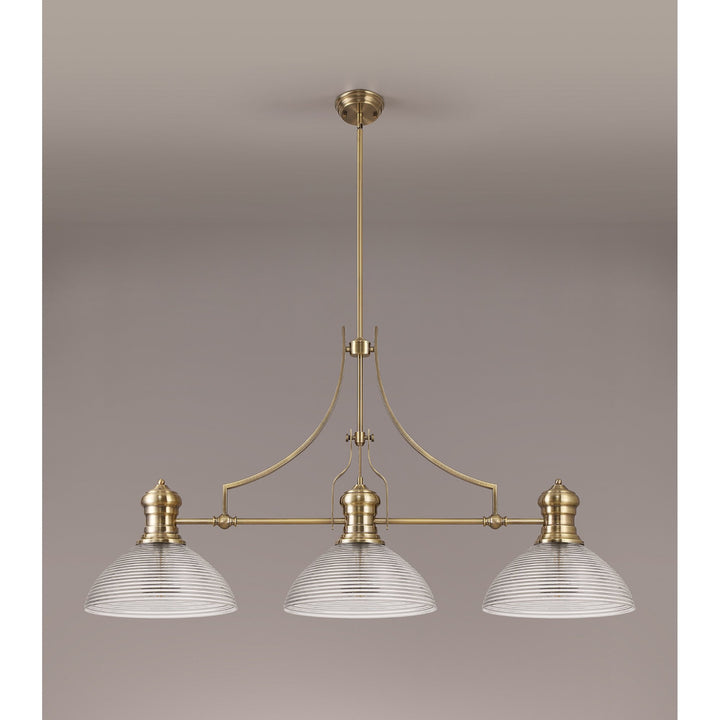Louis 3 Light Telescopic Pendant With 33.5cm Prismatic Glass Shade Antique Brass/Clear