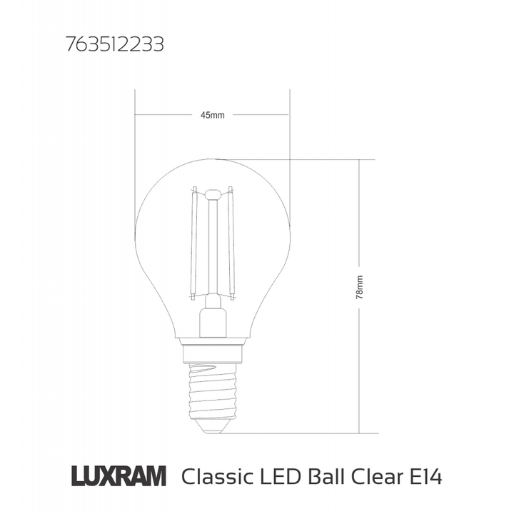 Luxram 763512233 E14 Golf Ball LED Dimmable 4W Warm White Clear