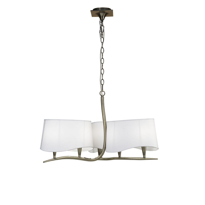 M1920 Ninette Pendant 3 Arm 6 Light E14 Antique Brass Ivory White Shades