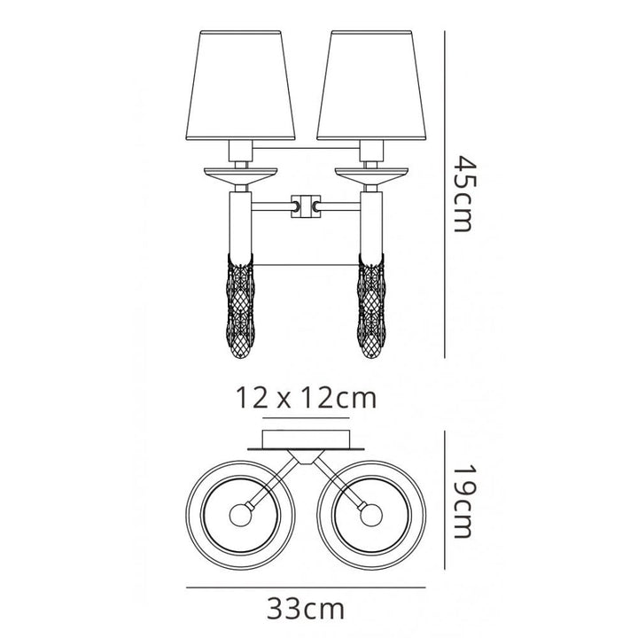 M3883 Tiffany Wall Lamp 2+2 Light E14 Soft Bronze Shades Antique Brass/Crystal