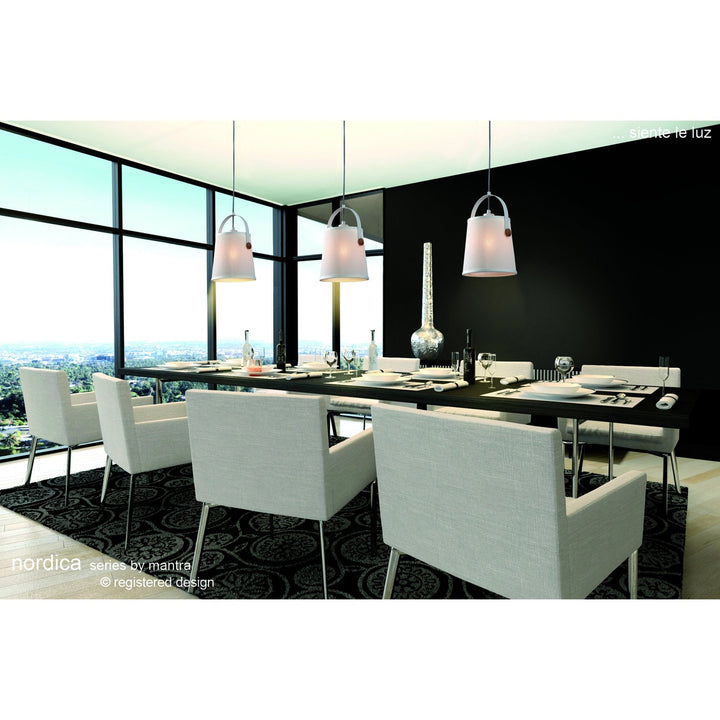 Nordica is a sleek and versatile range, a collection that is perfectly balanced by its combination of translucent shades, metal hardware and a natural wood structure. The Scandinavian influence can be seen in its minimalistic design, making it transferable across different decor schemes. The design and choice of colour between black and white is timeless. Every detail has been considered in this design and a complimenting braided cable enhances the products design identity even further.