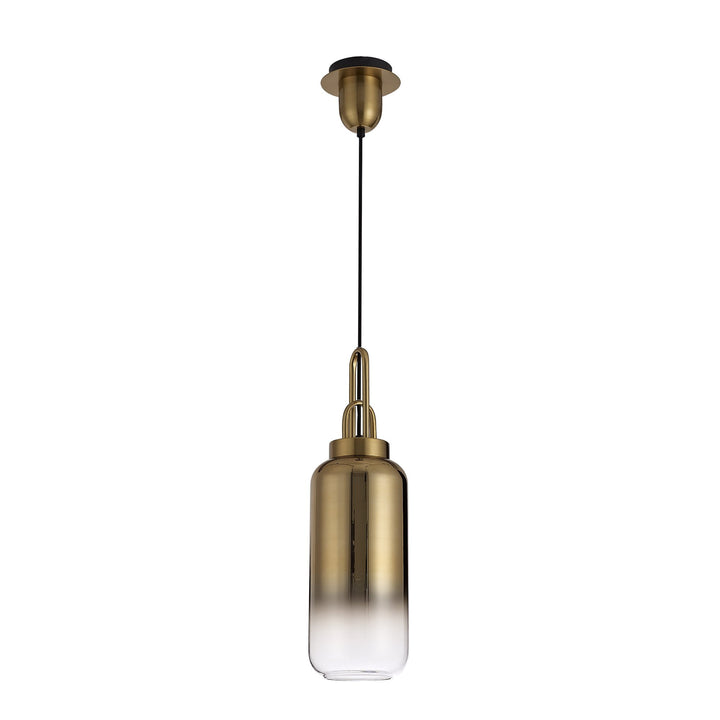 Nelson Lighting NLK03509 Acme 1 Light Pendant With 30cm Cylinder Glass Brass Gold/Matt Black/Clear