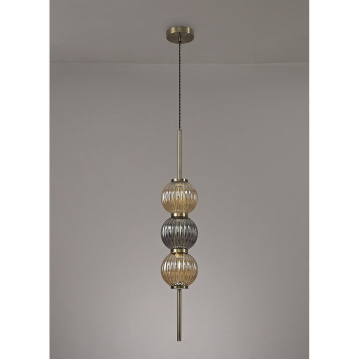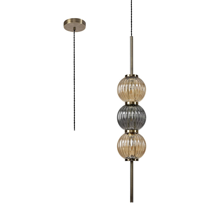 Farro Pendant Antique Brass/Smoked & Amber Glass