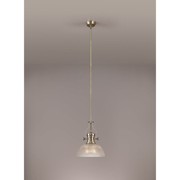 Louis 1 Light Telescopic Pendant With 30cm Prismatic Glass Shade Antique Brass/Clear