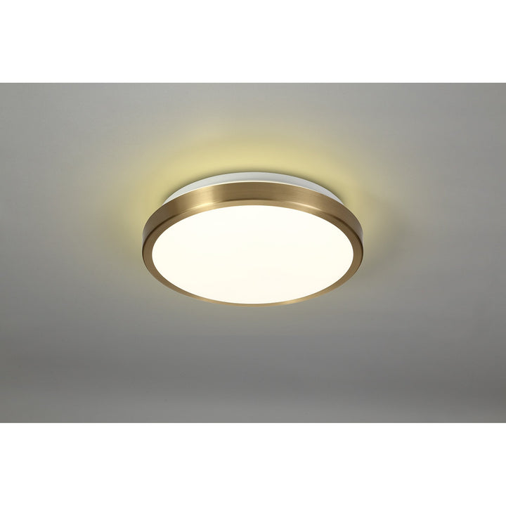 Mama is a flush IP44 rated circular ceiling light which houses 4000K integral LEDs with a total 12W output. The high quality LEDs are diffused by a substantial opal glass which is bordered by either a soft bronze or satin nickel frame making them an ideal contemporary bathroom lighting solution.