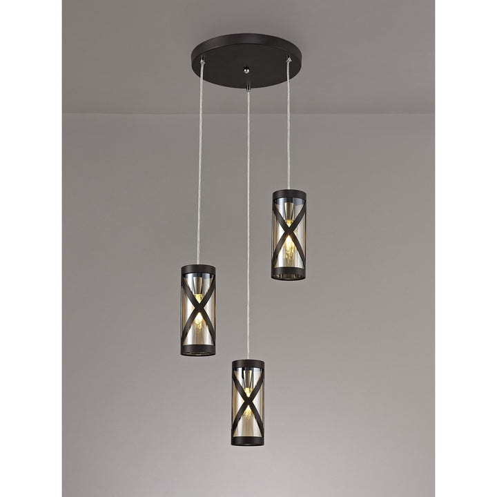 Nivarna 3 Light Round Pendant Oiled Bronze/Polished Chrome/Amber