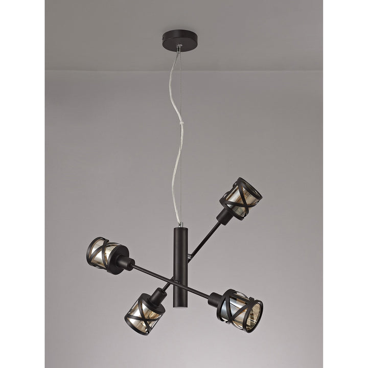 Nivarna 4 Light Adjustable Pendant Oiled Bronze/Polished Chrome/Amber