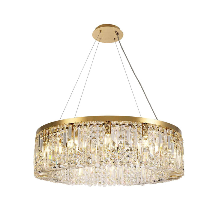Zian 80cm Round Pendant Chandelier 12 Light Gold/Crystal