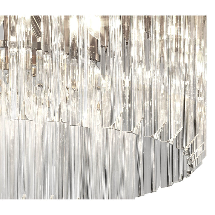 The popularity of the Kobra collections initial release has been so overwhelming that the collection has now been extensively expanded to meet a wider range of specification needs. This contemporary design which originally combined a traditional brass finish with clear sculptured glass pieces, now offers a polished nickel or matt black finish with either clear, cognac or smoked glass. The long angular shape of the glass which are in a tiered form, can now be found on larger more dramatic designs including a five tier and rectangular pendant to name only a few. Kobra has a traditional regal effect composed with modern materials to create a range suitable for either a modern or more traditional room setting. The unique pyramid forms protruding from the frame provide an intriguing overall shape across this comprehensive collection.